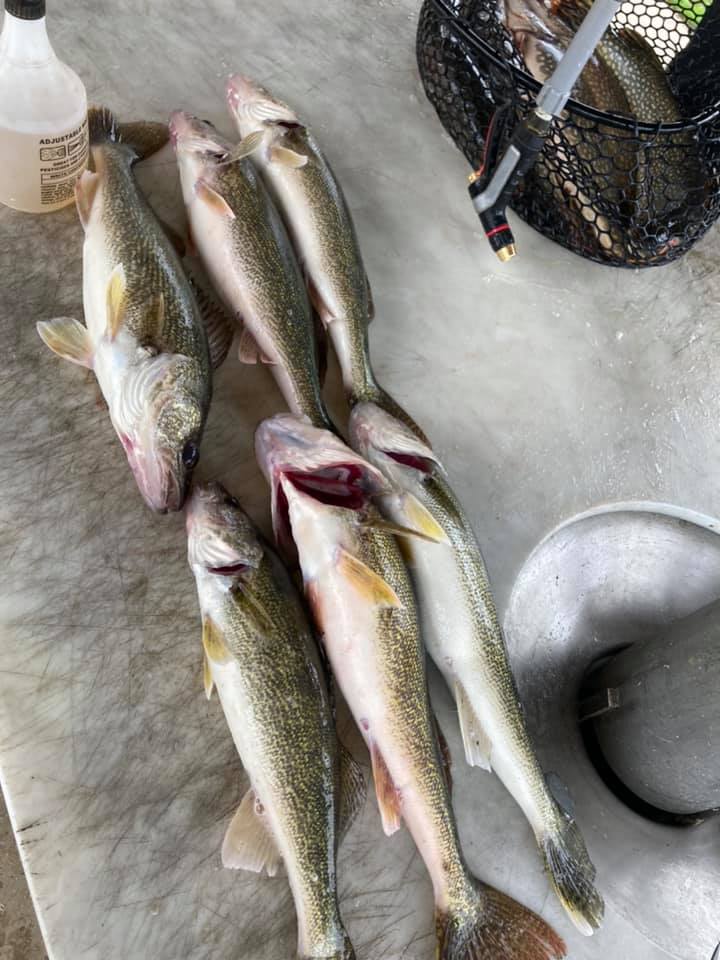 We are continuing to use #7 Scatter Raps, with most colors producing fish. The walleyes have been aggressive, and many times completely inhaling the lure, getting deep into their gills. Right now, I do not recommend fishing this way and not keeping the walleyes. Too many of these fish are not going to make it due to the harm caused in their gills.