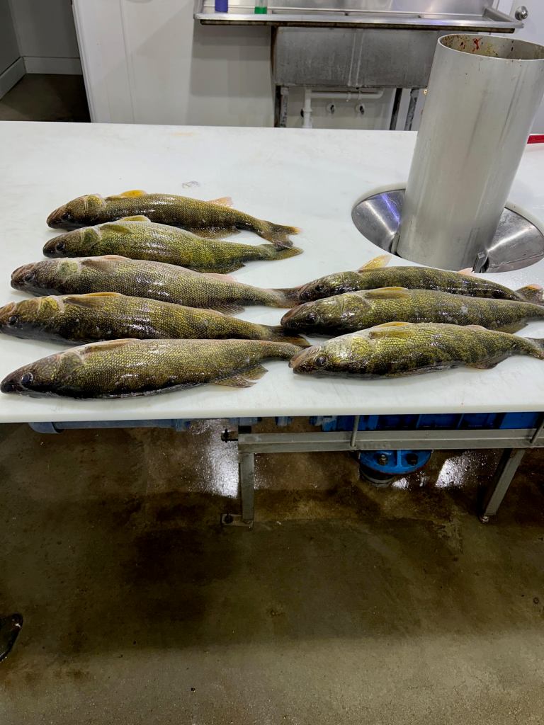 All of our walleyes today were caught with my personal spring favorite, a Northland Mimic Minnow in Firetiger. This made perfect sense, as when we cut open one of the walleyes, a pile of 4″ perch came flowing out. All of our fish today were spawned out, except for one nice 24″ female that was released. A slow retrieve was necessary to fully entice these fish, and I’d expect that to continue until the water warms up a bit more.